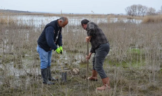 Doğa Koruma ve Milli Parklar (DKMP) Eskişehir Şube Müdürlüğü sorumluluğunda bulunan Balıkdamı Sulak Alanı'ndaki kuşlar için söğüt fidanı dikildi.