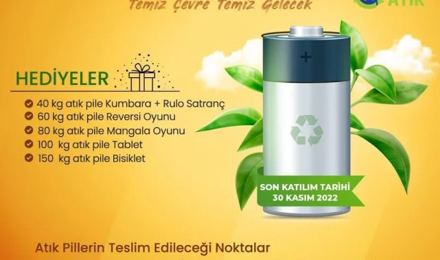Balıkesir Büyükşehir Belediyesi, 'Temiz Çevre Temiz Gelecek' sloganıyla ödüllü atık pil toplama kampanyası başlattı. Tablet ve bisiklet gibi ödülleri kazanmak isteyenler 30 Kasım 2022 tarihine kadar toplama noktalarına pilleri ulaştırması gerekiyor.