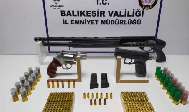 İl Jandarma Komutanlığı ekiplerince Bandırma, Bigadiç, Burhaniye, Edremit, Gönen, İvrindi, Karesi, Susurluk ve Savaştepe ilçelerinde yapılan yol kontrollerinde, çeşitli suçlardan aranan 17 şahıs gözaltına alınırken, 2 adet ruhsatsız av tüfeği, 2 adet kurusıkı tabanca ve 25 adet tabanca fişeği ele geçirildi.