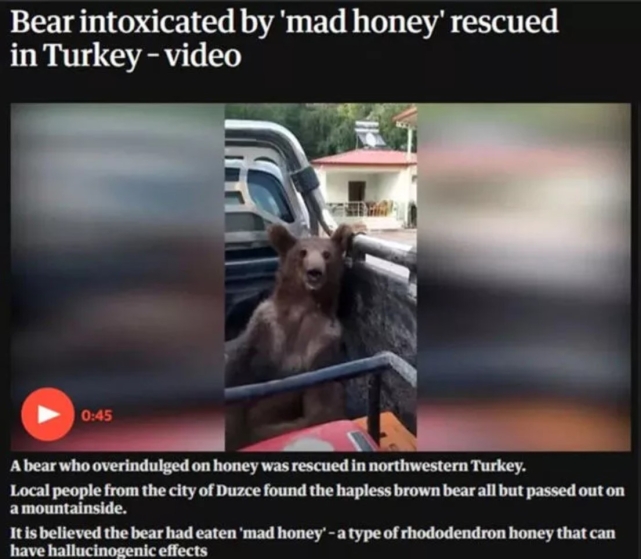 Düzce'nin Yığılca ilçesinde deli bal üretimi yapan arıcıların sersemlemiş halde bulduğu yavru ayının görüntüleri Türkiye’de gündemde yer almaya devam ederken dünya basının da ilgisini çekti.