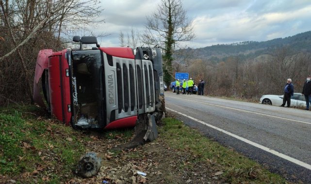 Kaza Bartın- Karabük karayolu 28. kilometresinde meydana geldi. Atalay Yıldız idaresindeki 37 UA 868 plakalı tır, iddiaya göre karşı istikametten hatalı sollama yaparak gelen 78 ABB 501 plakalı otomobille çarpışarak devrildi. Kazada tır sürücüsü yaralandı. İhbar üzerine olay yerine polis, jandarma ve 112 ACİL Servis ekipleri sevk edildi. Sağlık ekiplerinin ilk müdahalesinin ardından yaralı Bartın Devlet Hastanesine kaldırıldı.