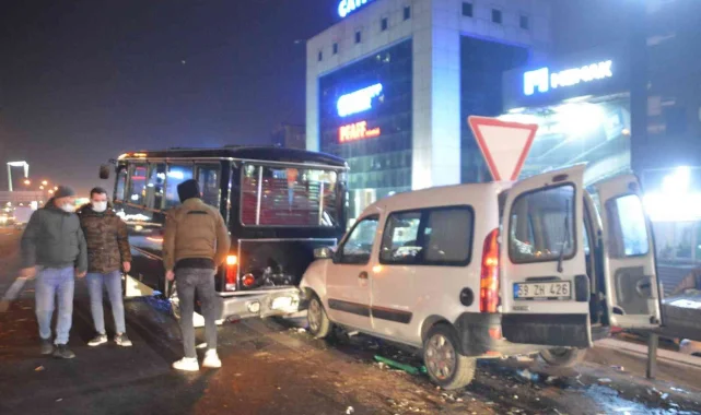 Basın Ekspres'te park halindeki minibüse hafif ticari araç çarptı: 3 kişi yaralandı