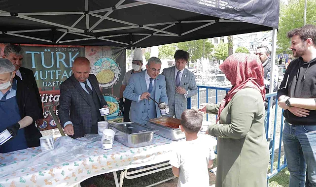 Türk Mutfağı Haftası etkinlikleri çerçevesinde, belediye bahçesinde Kütahya'nın yöresel lezzetlerinden birisi olan sıkıcık çorbası, Belediye Başkanı Alim Işık tarafından ikram edildi.