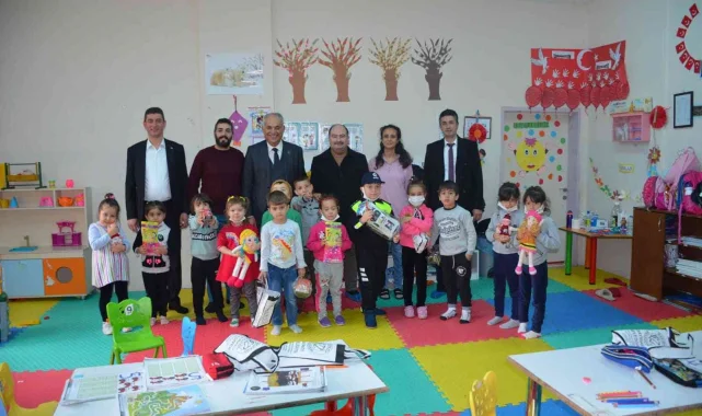 Başkan amcalarından minik öğrencilere çeşitli hediyeler