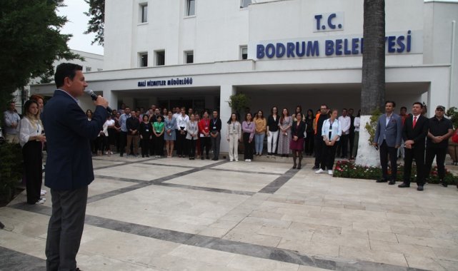 Bodrum Belediye Başkanı Ahmet Aras, 1 Mayıs İşçi Bayramı ve Ramazan Bayramı öncesi belediye personeli ile bayramlaştı.