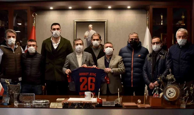 Tepebaşı Belediye Başkanı Ahmet Ataç'ın kentte faaliyet gösteren spor kulüpleri ve mahalle temsilcileri ile temaslarını sürdürüyor. Başkan Dt. Ataç, Demirspor Kulübü Başkanı Mehmet Ali Hünerlier ve yönetim kurulu üyelerini makamında ağırladı. Ziyarette kulüp faaliyetleri hakkında bilgi veren Hünerlier, Ataç'a spor kulüplerinin ve sporcuların her zaman yanında olmasından dolayı teşekkür etti. Ziyaret, Hünerlier'in Ataç'a üstünde isminin yazılı olduğu Demirspor forması hediye etmesi ve hatıra fotoğrafı çektirilmesiyle sona erdi.