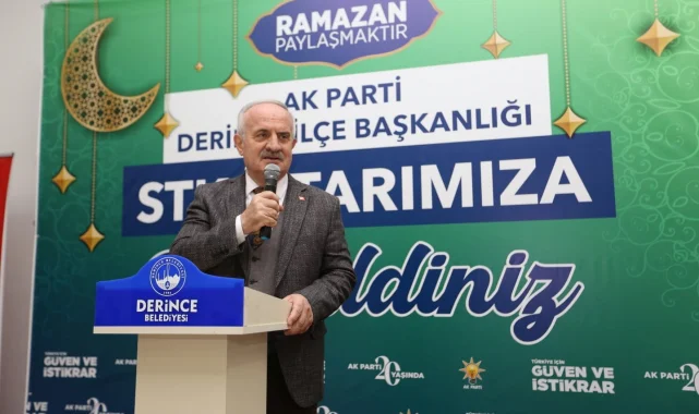 AK Parti Derince İlçe Başkanlığı'nın sivil toplum kuruluşlarının katılımıyla düzenlediği iftar programında konuşan Derince Belediye Başkanı Zeki Aygün, "Sivil toplum kuruluşlarımızla daima biriz, beraberiz" dedi.