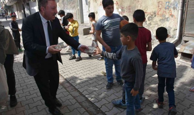 Başkan Beyoğlu, çocuklara kandil simidi ve lokum ikramında bulundu