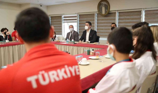 Başkan Gökhan Yüksel ödüllü sporcularla bir araya geldi