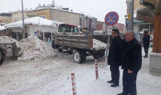 Yoğun kar yağışının ardından belediye ekipleri ilçe merkezindeki cadde ve sokaklarda kar temizleme çalışmalarına aralıksız devam ediyor.