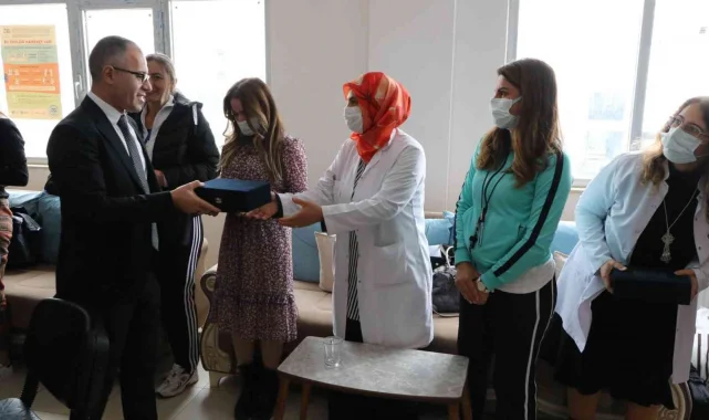 Konuşmasının ardından Neşeli Yüzler Anaokulu, Fuat Sezgin İlkokulu ve Fatih Sultan Mehmet Anadolu Lisesini de görev yapan öğretmen ve idarecilerin öğretmenler gününü kutlayarak, çeşitli hediyeler taktim etti.