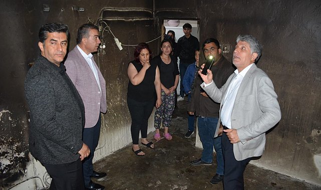 Başkan Yavuz evi yanan Uğur Yalçın ve ailesi ziyaret ederek yanan evde incelemelerde bulundu.