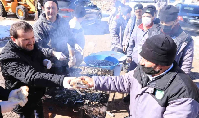 Başkandan karla mücadele eden işçilerine balık ziyafeti
