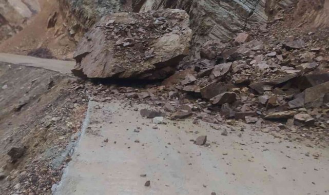 Batman'ın Sason ilçesine bağlı Kaşyayla grup köy yoluna düşen dev kaya parçası yolu ulaşıma kapattı.