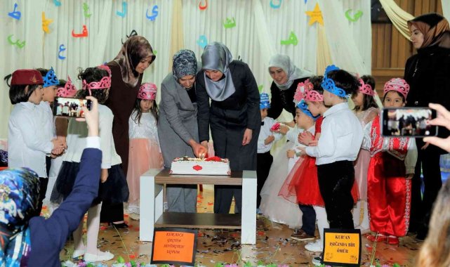 İstiklal Marşı'nın okunması ve Kur'an tilavetinin yapılması ile başlayan etkinlikte 4-6 yaş arası kreş öğrencilerine Kur'an okumaya geçtikleri için kreş eğitmenleri tarafından taç giydirildi.