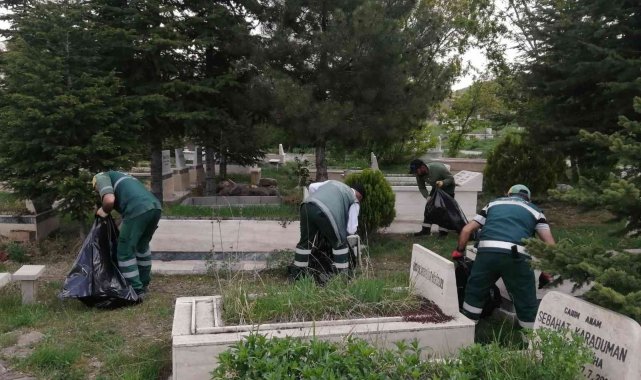 Ramazan Bayramı öncesi Ankara Keçiören Belediyesi tarafından ilçedeki mezarlıklarda genel temizlik çalışması yapıldı.