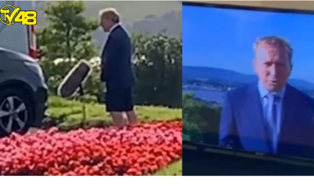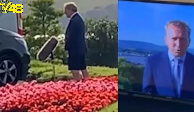 BBC muhabiri Enda McClafferty evinin önünden canlı yayın yaparken takım elbise giydi. Ancak sıcak havadan dolayı üstüne ceket altına ise şort giymeyi tercih etti. Enda'nın komşusu ise o sırada boş durmadı.