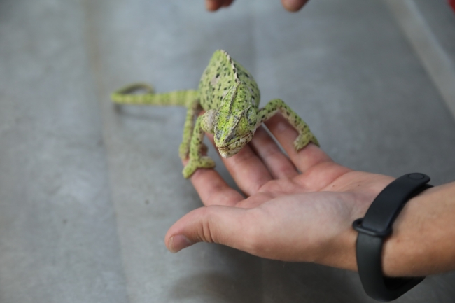 Barınak veterinerlerinden Kubilay Cici, “Vatandaşımızın yol kenarında bulduğu, yüzünde ve gözünde kanamalar olan bukalemunu hemen tedaviye alıp ilk muayenesini yaptık. Kanamanın gözünden kaynaklandığını tespit edip bölgeyi temizledik ve antibiyotik tedavisine başladık. Dişi olan bu Akdeniz bukalemunu bu bölgede çok yaygındır. Bukalemunun tedavisinin takibini yapıyoruz. 1 hafta daha tedaviye devam edip durumuna bakacağız’’ dedi.