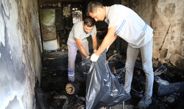 Basın Yayın ve Halkla ilişkiler Müdürlüğü Saha Çözüm Birimi ekipleri, yangında zarar gören ev sahibi aileyi ziyaret ederek hasar tespiti yaptı. Gerekli görüşmelerin ardından Temizlik İşleri Müdürlüğü personeli tarafından evin içerisi yanan eşyalardan temizlendi. Destek Hizmetleri Müdürlüğü’ne bağlı personeller ise yanan ev ile zarar gören üst kat komşunun elektrik ve su bağlantıları ile ilgili çalışma başlattı.