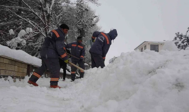 Bingöl'de günlerdir etkisini sürdüren kar yağışı nedeniyle gece gündüz demeden çalışan belediye işçileri, iş makinelerinin yanı sıra kürekleriyle kaldırımlardaki karları temizliyor.