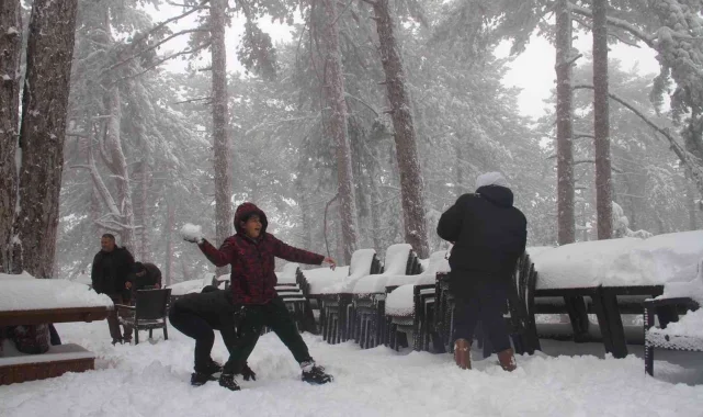 Aydın'ın Kuyucak ilçesinde dün akşamdan bu yana etkili olan yağış, gece yüksek kesimlerde kar yağışına döndü. Kuyucak'ın yüksek rakımlı mahallelerinde ve Kuyucak Belediyesi Belenova Sosyal Tesisleri'nde kartpostallık görüntüler ortaya çıktı. Hafta sonu tatilini fırsata çeviren vatandaşlar ise yılın ilk karı düşen tesislere akın etti.