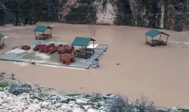 Şiddetli yağış nedeniyle Adıyaman'ın Besni ilçesinde bulunan Su Gözü Mesire alanında bulunan dere taştı, piknik alanı sular altında kaldı.