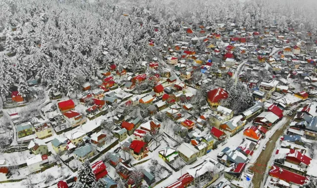 Osmaniye'de Amanos Dağları'nda yer alan Zorkun Yaylası kar yağışıyla birlikte beyaz gelinliğini giyerken, ortaya çıkan kartpostallık görüntüler drone ile havadan görüntülendi.