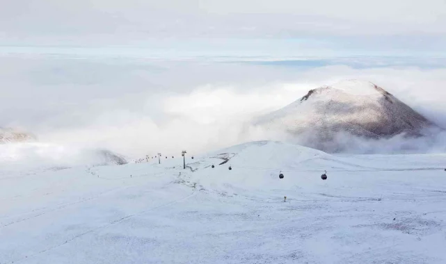Beyaza bürünen Erciyes'te kar kalınlığı 10 santim oldu