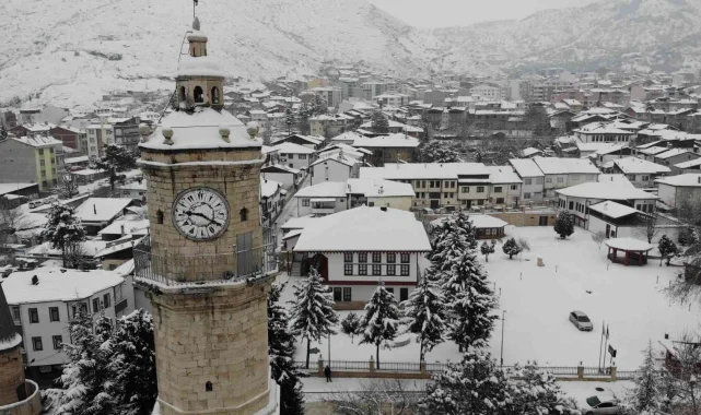 Anadolu'nun tarihi kentlerinden Tokat kar yağışı ile birlikte beyaza büründü. Karla kaplanan şehirde tarihi mekanları eşsiz manzaralar oluşturdu. Osmanlı Padişahı Sultan II. Abdülhamid Han'ın tahta çıkışının anısına inşa edilen saat kulesi ile karşı tarafında bulunan Mevlevihane müzesi kışın farklı bir güzelliğe büründü. 120 yıldır zamana tanıklık eden 33 metre yüksekliğindeki saat kulesi ile Anadolu'nun en estetik Mevlevihane Müzesi havadan görüntülendi. Karla kaplanan çam ağaçlarının arasında ortaya çıkan manzara görenleri mest etti.