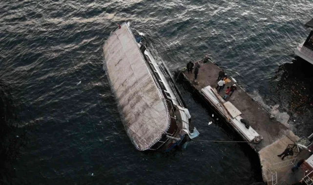 Lodos nedeniyle batan balıkçı teknesi drone ile havadan görüntülendi.