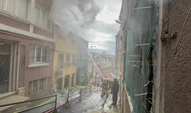 Beyoğlu'nda bulunan iki katlı bir binanın çatı katından alevler yükseldi. Olay yerine gelen itfaiye ekibi hatalı park nedeniyle sokağa girmekte güçlük yaşadı.