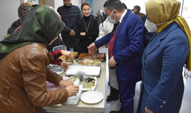 Kadınların el emeği ve göz nuru ürünlerinden oluşan giyecek, yiyecek ve hediyelik eşya çeşitlerinin sergilendiği sergiyi ziyaret eden Bağlar Belediye Başkanı Hüseyin Beyoğlu, eşi Dürdane Beyoğlu ile birlikte bütün stantları gezerek ortaya koydukları emekten dolayı emekçi kadınları tebrik etti.