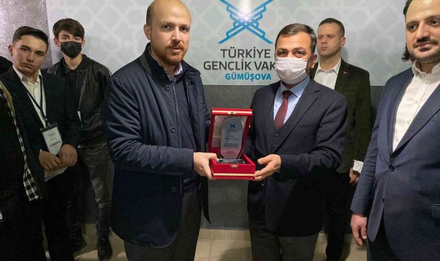 TÜGVA Yüksek İstişare Kurulu üyesi Bilal Erdoğan, Düzce Açı Eğitim Kurumları Kurucusu Tamer Erdinç'e TÜGVA'ya verdiği desteklerden dolayı teşekkür plaketi verdi.