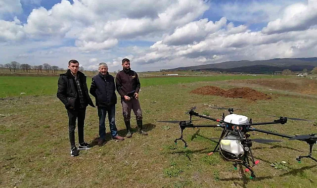 Bilecik'te bir çiftçi tarlasında ekili buğdayları Zirai İnsansız Hava Aracı (ZİHA) ile ilaçlattı.