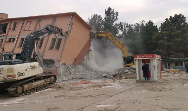 Tokat'ın Erbaa ilçesinde yıkım çalışmaları yapılan eski hastane binasının yakınındaki ATM'den para çekmeye devam eden vatandaşlar görenleri şaşırttı.