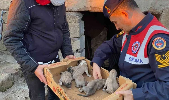 Bingöl'de İl Jandarma Komutanlığı personeli, 8 yavru ve anne köpeği donmak üzereyken kurtarıp barınağa yerleştirdi.