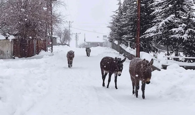 Bingöl'de yaz aylarında günlük işlerde kullanılan eşekler, kış aylarında ölüme terk ediliyor. Yürekleri sızlatan görüntülerde eşekler, kar yağışı altında yaşam mücadelesi veriyor.