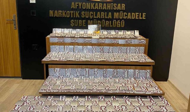 Afyonkarahisar polisinin yaptığı uygulamada şüphe üzerine durdurulan araç binlerce sentetik ecza maddesi ele geçirilirken 2 kişi gözaltına alındı.