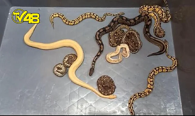 Tırın dorse kısmında bez bir çanta içerisindeki ince kadın çoraplarına konulmuş biri ölmüş halde 28 piton yılını ele geçirildi.