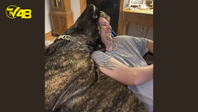 8. "Erkek kardeşimin köpeği 170 kilo ve kendisi böyle oturmayı çok seviyor."