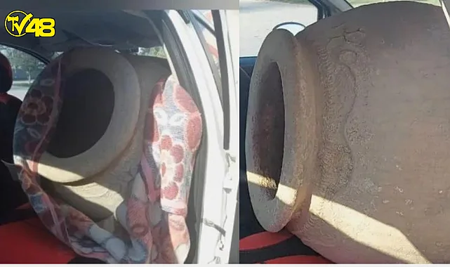 Araçta yapılan aramada jandarma ekipleri, ön koltuğa battaniyeye sarılı halde bir küp ele geçirdi. Jandarma tarafından titizlikle araçtan indirilen küpün uzmanların yaptığı incelemede, Pithos adı verilen küpün Bizans dönemine ait yaklaşık bin 200 yıllık olduğu tespit edildi. O dönemlerde Pithos Küpünün sıvı maddelerin muhafazası için kullanıldığı bildirildi. Üzerinde haç işareti bulunan küp jandarma ekipleri tarafından muhafaza altına alınarak İl Kültür ve Turizm Müdürlüğü yetkililerine teslim edildi. Gözaltına alınan şüphelilerin, Pithos Küpünü aracın arka koltuğuna sığdıramadıkları için battaniyeye sarıp ön koltuğa koydukları öğrenildi. Gözaltına alınan 2 şüpheli ise sorgulanmak üzere İl Jandarma Komutanlığına götürüldü.