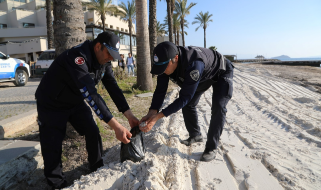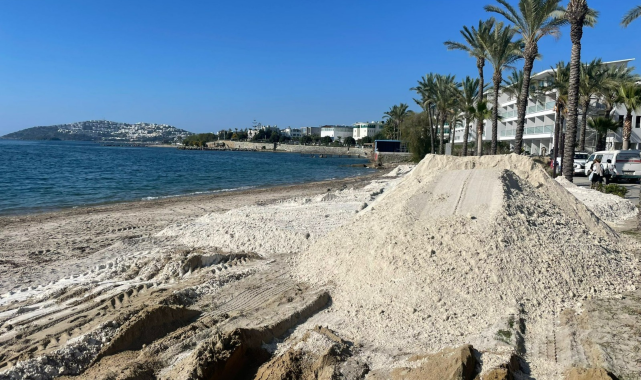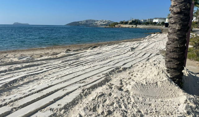 Bahçelievler Mahallesi Şevket Sabancı Caddesi üzerinde bulunan bir turizm tesisinin sahile beyaz kum döktüğü ihbarı üzerine bölgeye giden Bodrum Belediyesi Zabıta Müdürlüğü ekipleri, döküm işlemini durdurarak sahilden iş makinelerini çıkardı.