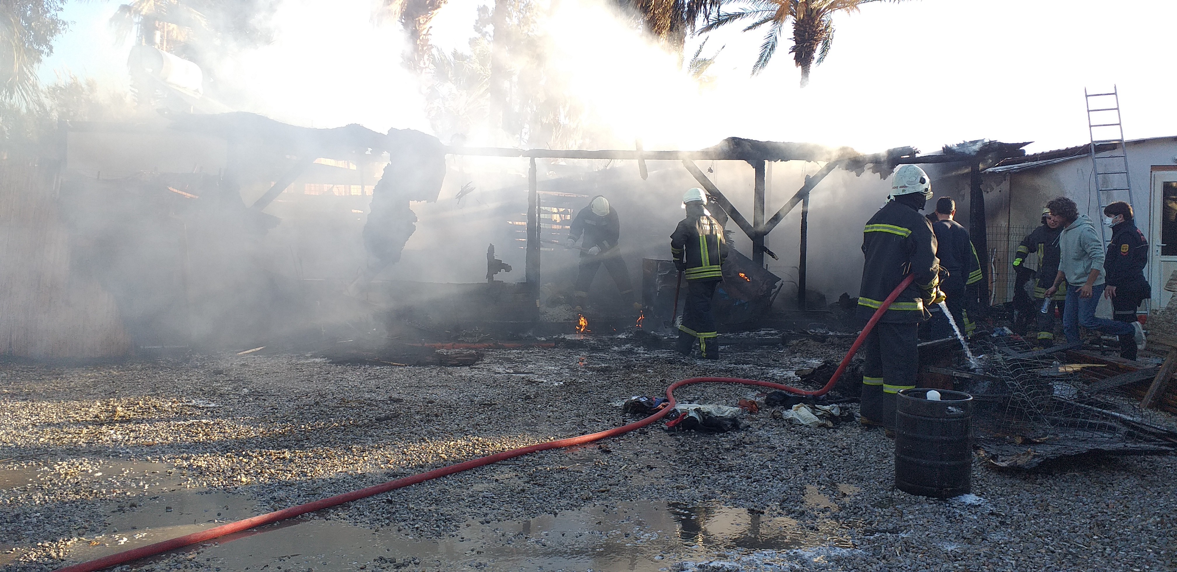 Edinilen bilgiye göre, Ortakent - Yahşi Mahallesi’nde sahilde faaliyet gösteren su sporları merkezinin deposunda iddiaya göre buzdolabındaki elektrik kontağından yangın başladı. Hızla büyüyen yangın, deponun tamamını sardı. Bölgeden siyah dumanların yükseldiğini görenler ihbarda bulundu. İhbarın ardından yangın yerine itfaiye ekipleri sevk edildi. Bodrum İtfaiye Grup Amirliği’nin 3 ekiple müdahale ettiği yangında 112 Acil Sağlık ekipleri de yaşanabilecek olumsuzluğa karşı bölgede hazır bekledi. Ekiplerin uzun uğraşları sonucu çevrede korku ve paniğe neden olan yangın söndürüldü, soğutma çalışması yapıldı. İşletme çalışanlarının ise büyük bir üzüntü yaşadığı görüldü. Kış aylarında kapalı olan işletmenin deposundaki tüm malzemeleri yandı.