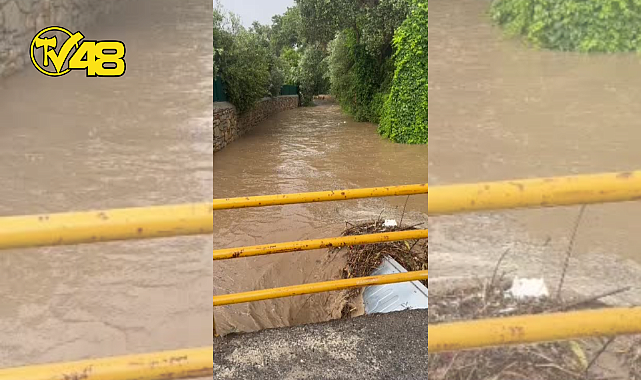 Muğla’nın Bodrum ilçesinde akşam saatlerinde etkili olan yağış nedeniyle dere yatağı taştı.