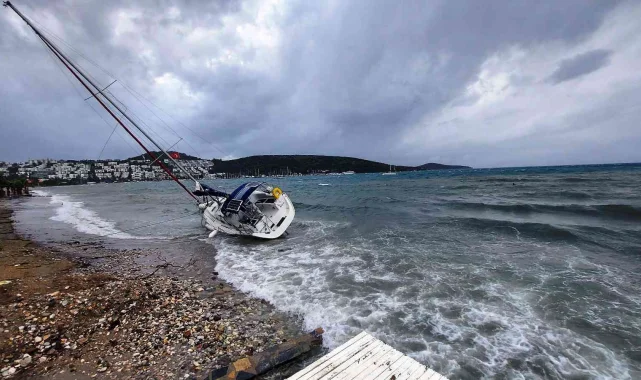 Bu sabah saatlerinde başlayan ve saatteki hızı 70 km'ye kadar çıkan fırtına nedeniyle balıkçı tekneleri batarken, yelkenli bir tekne karaya sürüklendi. Fırtına nedeniyle Bitez sahili açıklarında demirli duran yaklaşık 10 metre uzunluğundaki yelkenli tekne, bağlı bulunduğu yerden sürüklendi. Sahile kadar sürüklenen 700 bin lira değerindeki yelkenli tekne Bitez sahiline vurdu. Fırtınanın şiddetini arttırdığı saatlerde oluşan dev dalgalar nedeniyle kuru yük gemileri de koylara sığındı. Güneyde esen fırtına, Kumbahçe, Gümbet, Bitez, Ortakent ve Akyarlar sahillerini etkisini gösterdi. Dev dalgaların oluştuğu Kumbahçe sahilinde ise dalgalar sahildeki işletmelere kadar ulaştı. Bodrum limanından tekne ve yatların denize açılmaması için Bodrum Belediyesi uyarılarda bulundu. Bodrum - Datça feribot seferleri ise iptal edildi. Zaman zaman yağmur yağışı ve fırtına hayatı durma noktasına getirdi. Kızılağaç mahallesinde ise yoldan geçen bir minibüs yağışlardan dolayı çöken yola saplandı.