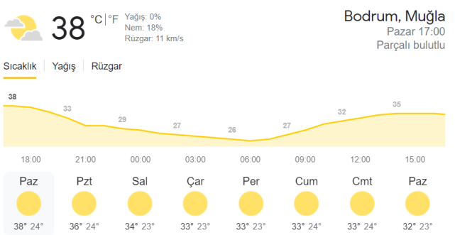 Bodrum'da önümüzdeki 5 Günlük hava Tahmini İse Şöyle: