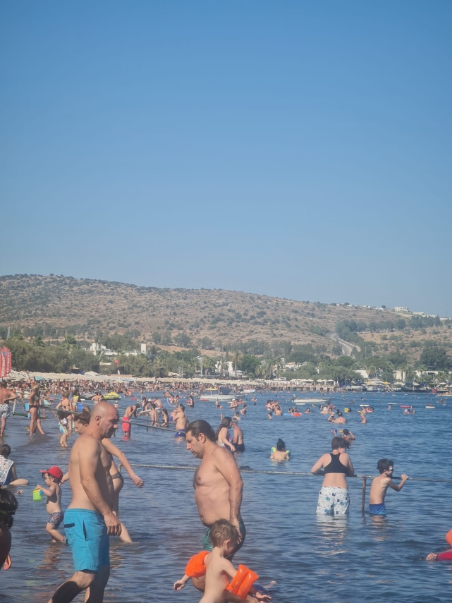 Muğla'nın Bodrum ilçesinde sıcak havadan bunalan yerli halk ve tatilciler plajları doldurdu.