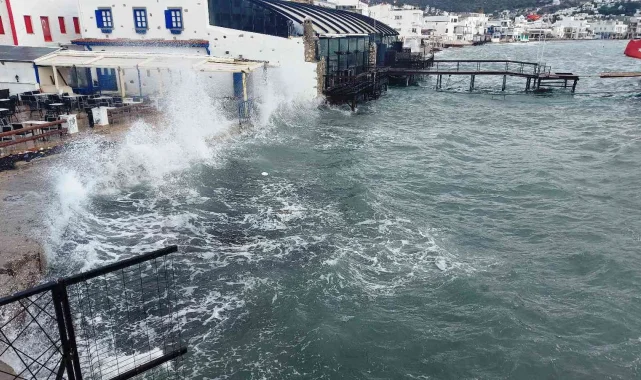 Muğla'nın Bodrum ilçesinde saatteki hızı zaman zaman 80 kilometreye kadar çıkan fırtına nedeniyle feribot seferleri iptal oldu, dalgalar sahili dövdü.