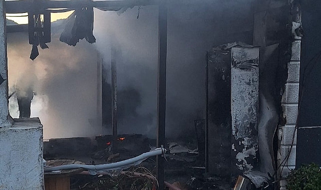 Prefabrik ev tamamen kullanılamaz hale gelirken . Yangının odun sobasından çıktığı belirlenmiştir.