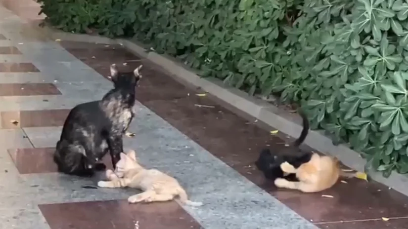 Anne kedi ve yavrularının bu sevimli anları, marina çevresinde sıcak ve neşeli dakikalar yaşattı.